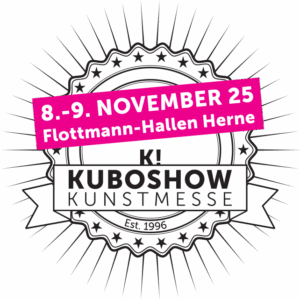 Mitten im Ruhrgebiet, in Herne, findet in den Flottmann-Hallen, einem ehemaligen Werk für Presslufthämmer, die KUBOSHOW KUNSTMESSE statt. 88 junge internationale Künstler:innen zeigen dort im Herbst ihre aktuellen Arbeiten. Das Programm ist gegenständlich orientiert und setzt stark auf die Malerei und die Skulptur.